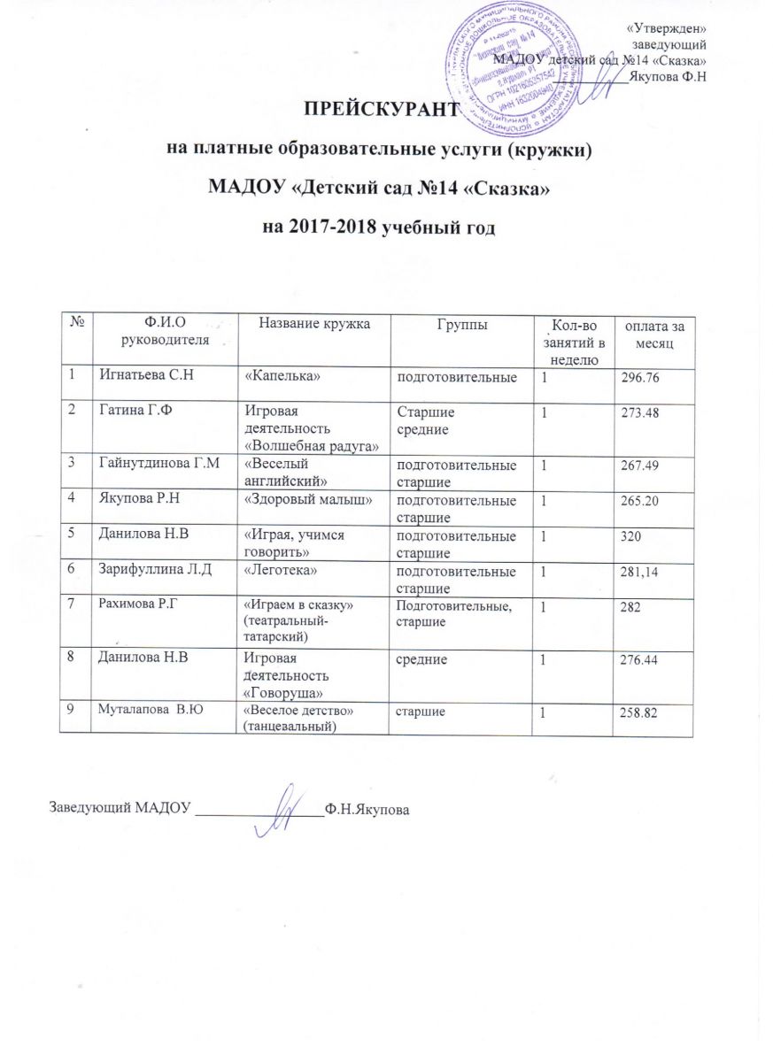 Прейскурант на платные образовательные услуги на 2017-2018 учебный год.