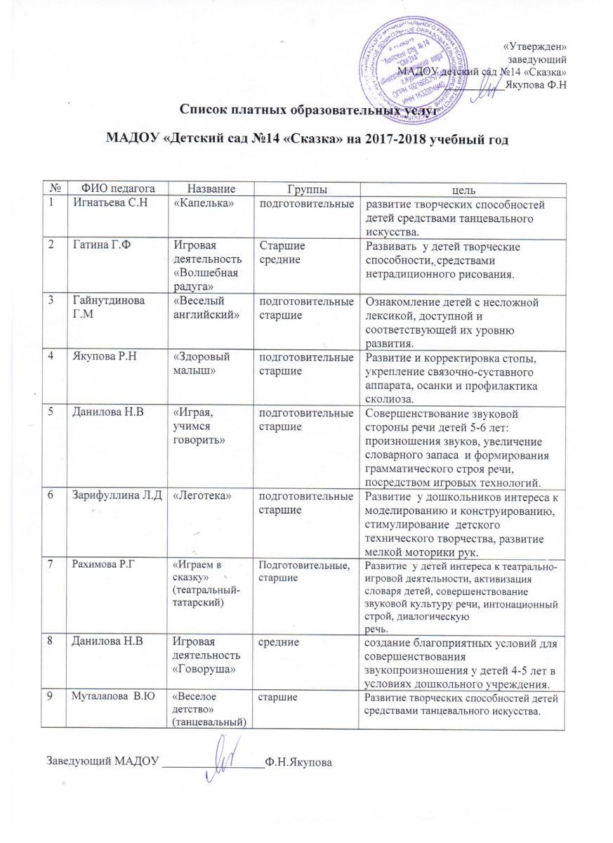 Список платных образовательных услуг на 2017-2018 учебный год.
