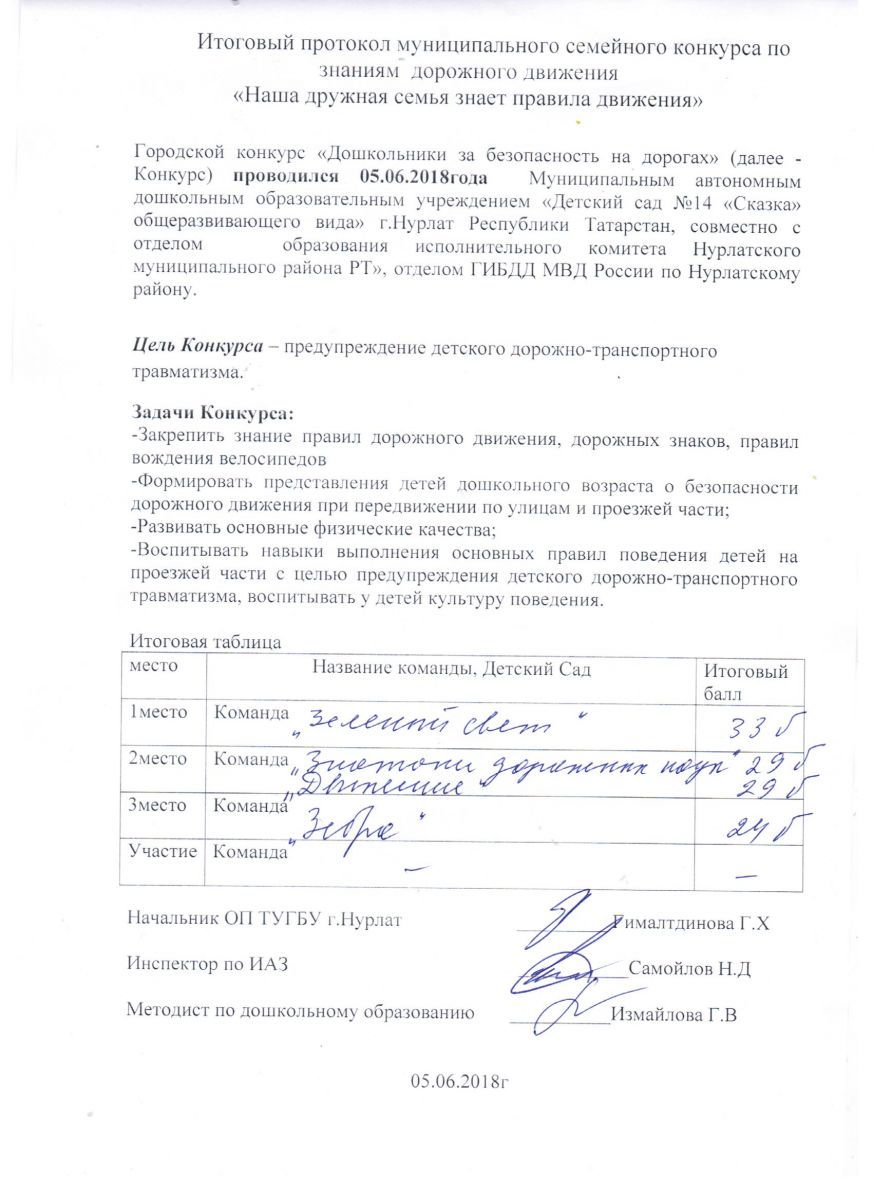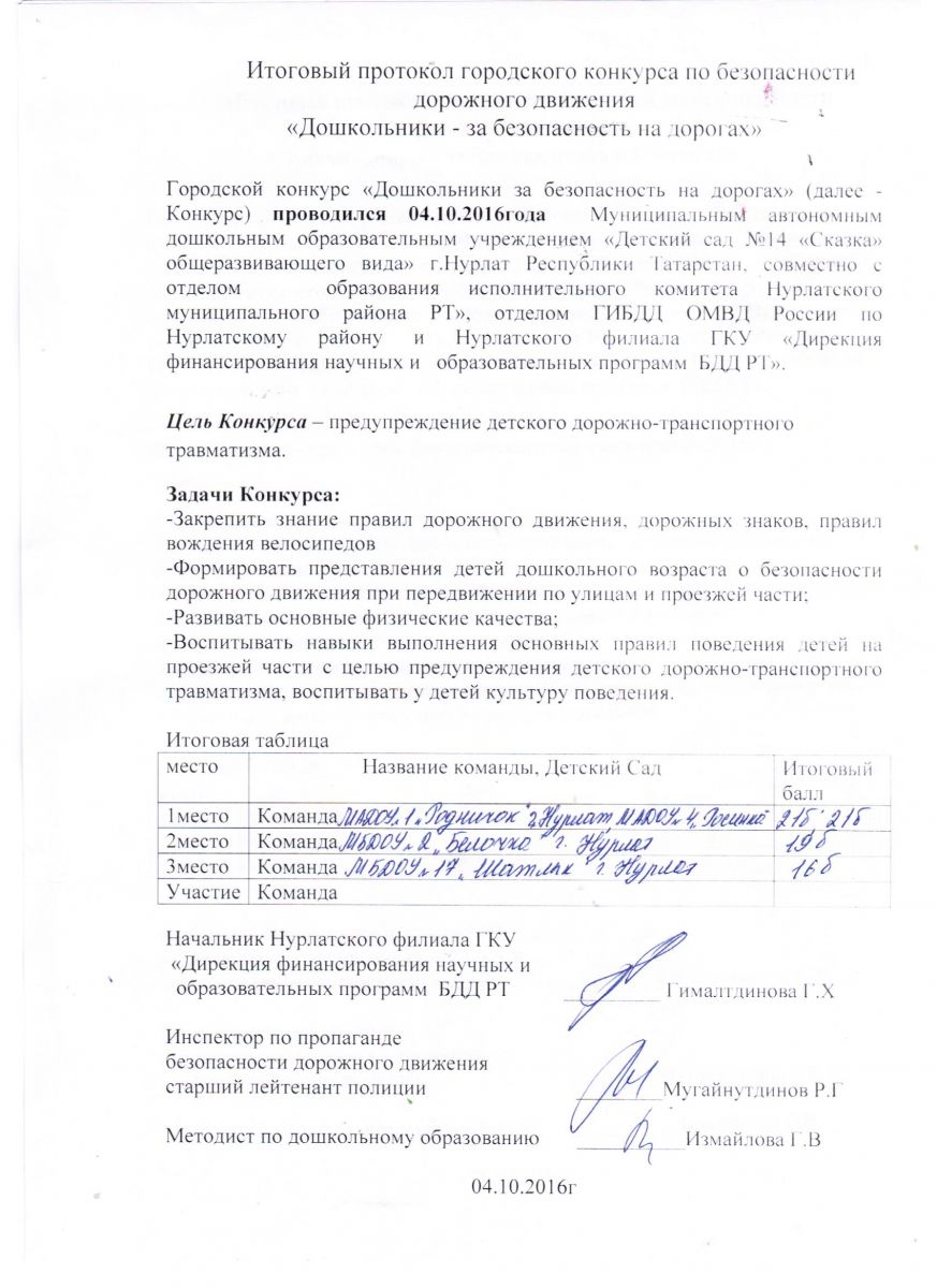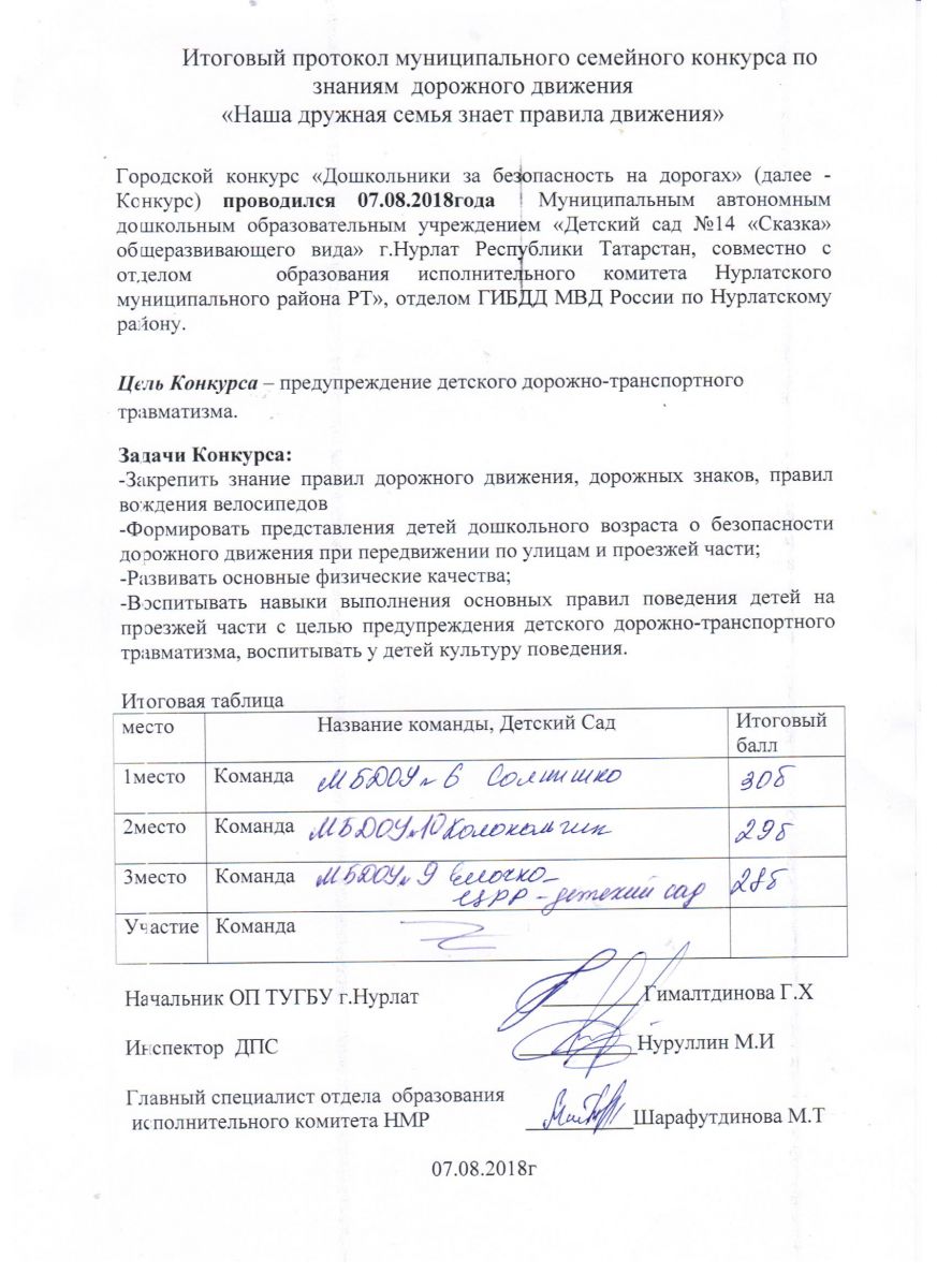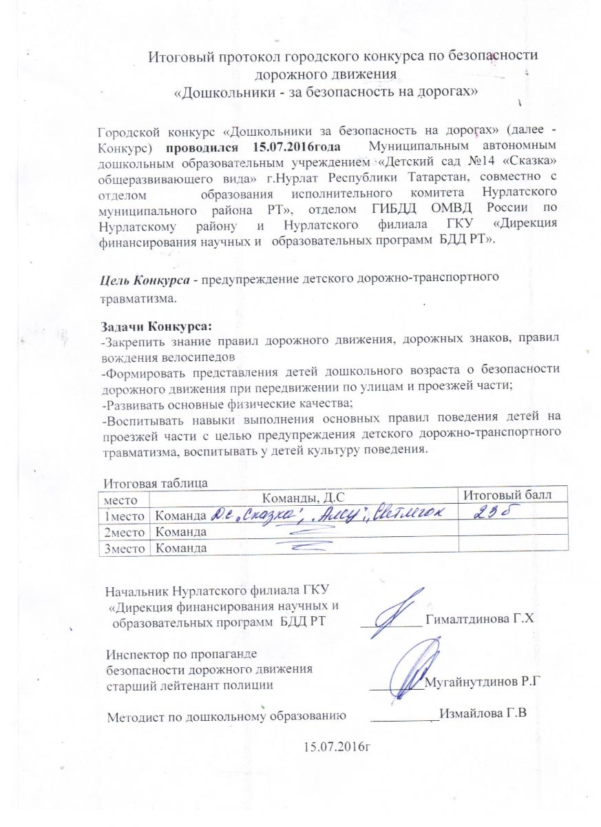 Итоговый протокол №1. /1 нче номерлы йомгаклау беркетмәсе.
