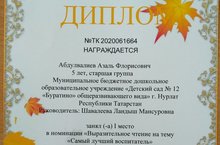Муниципальное бюджетное дошкольное образовательное учреждение «Детский сад № 12 «Буратино» общеразвивающего вида» г. Нурлат Республики Татарстан/Татарстан Республикасы Нурлат шәһәре "Балаларны һәрьяклап үстерү төрендәге 12 нче номерлы "Буратино" балалар бакчасы" муниципаль бюджет мәктәпкәчә белем учреждениесе