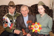 Члены патриотического клуба "Патриот" провели акцию под названием "Фото на память с ветераном". Посетили ветерана Великой Отечественной Войны Мандрейкина Петра Тимофеевича, поздравили с 70-летием Победы, вручили подарок, сделанный своими руками.
