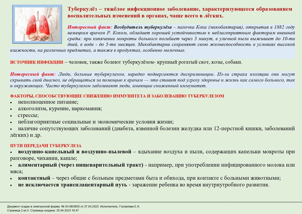 Памятки по профилактике туберкулёза 13.05.2023