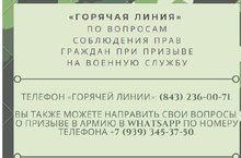 Телефон "горячей линии": (843)236-00-71. Вы также можете направить свои вопросы о призыве в армию в whatsapp по номеру телефона +7(939)345-37-50