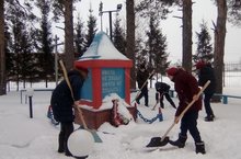 Волонтеры школы очищают от снега памятник, посвященный ВОВ 03.02.2020