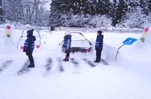 Юные участники конкурса снежных скульптур - отряд "Светофорики"