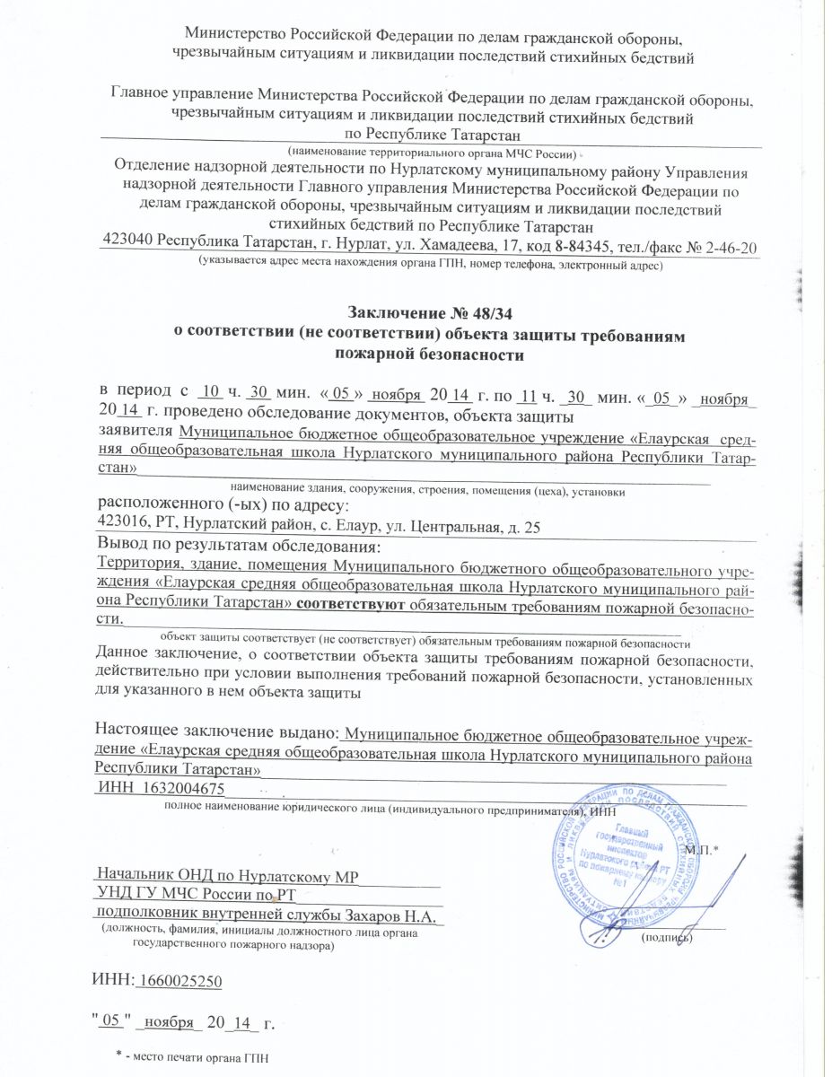 Заключение о соответствии объекта защиты требованиям пожарной безопасности