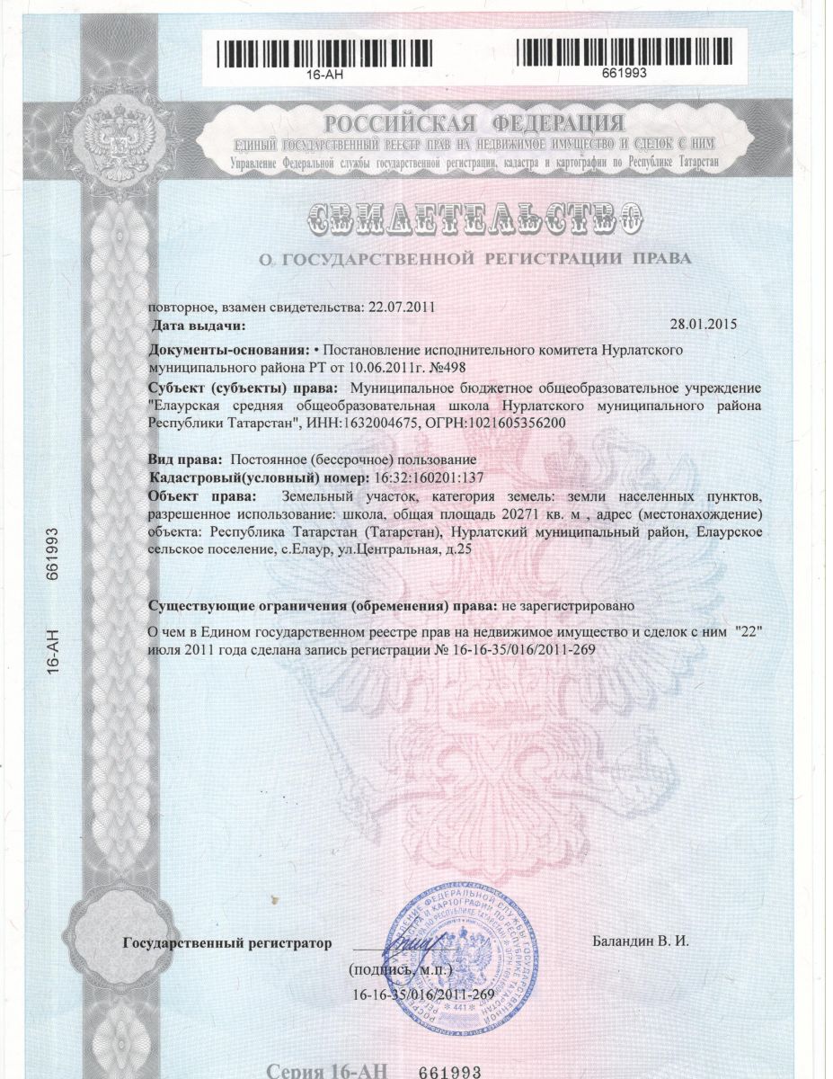 | Адрес: | 423016, Республика Татарстан, с. Елаур, ул. Центральная, дом 25/ Татарстан Республикасы, Нурлат муниципаль районы, Елаур авылы, Үзәк урамы, 25 нче йорт |