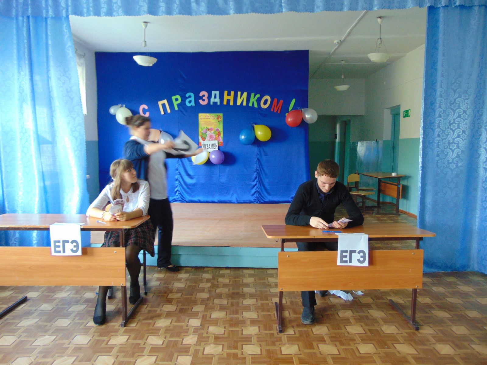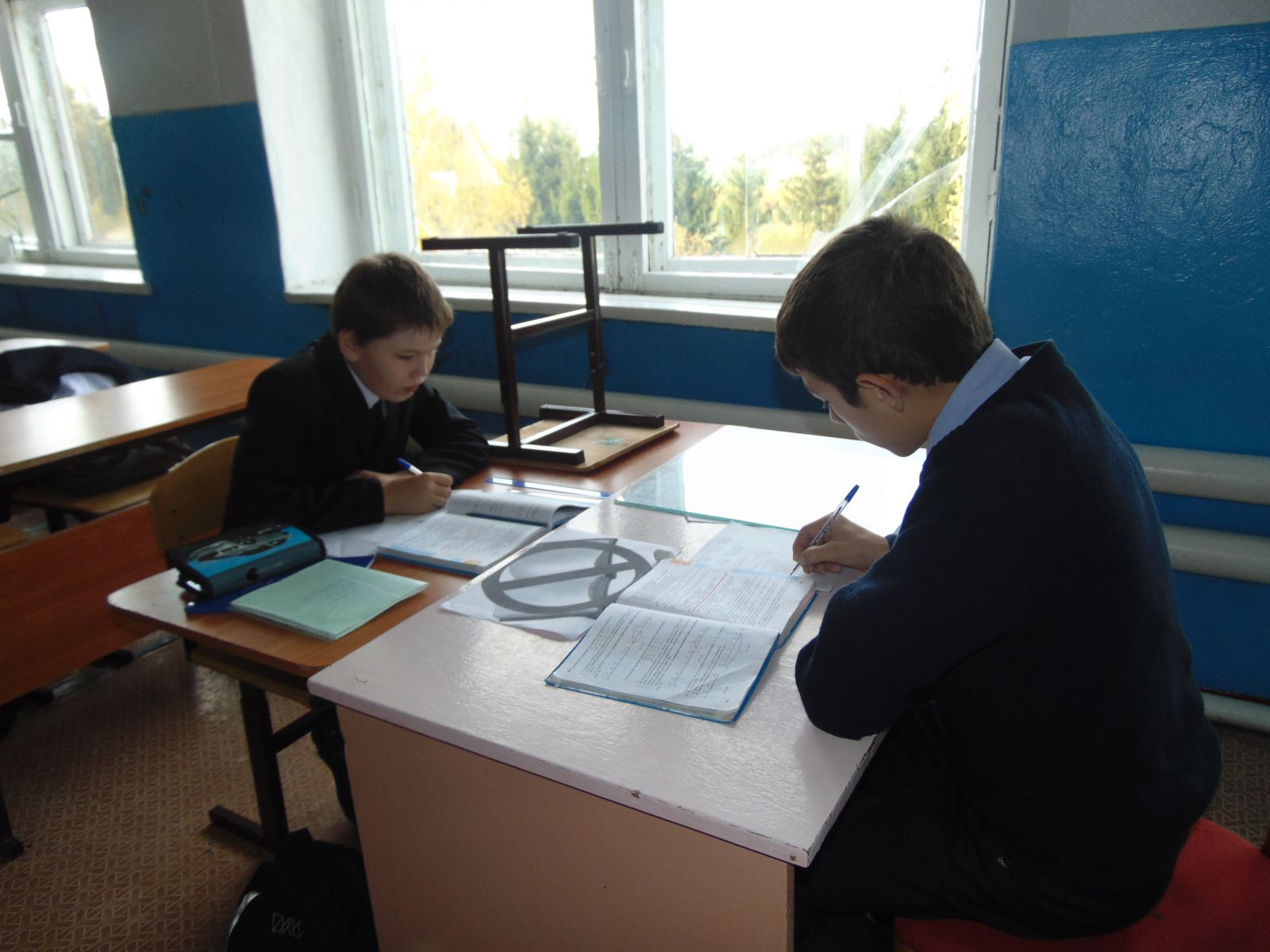 Ерофеев Ефим ставит ученику оценку.