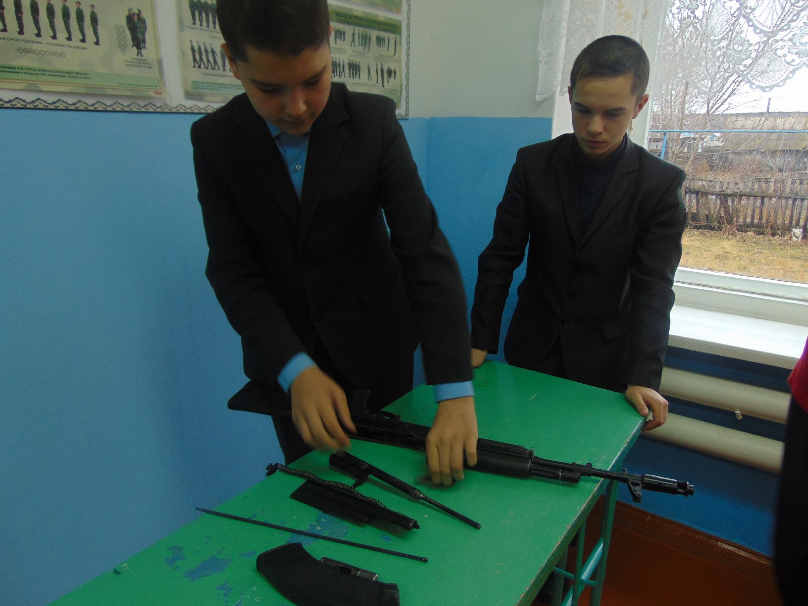 Подготовка отряда к конкурсу по юнармейским навыкам - сборка- разборка автомата