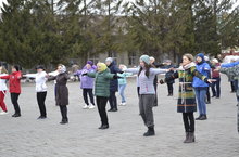 5 апреля 2019г. на центральной площади г. Нурлат прошла утренняя зарядка в рамках акции "10000 шагов к здоровью".