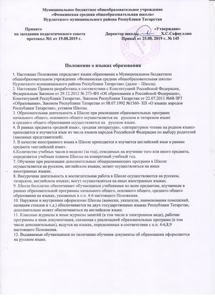 Муниципальное бюджетное общеобразовательное учреждение «Фомкинская средняя общеобразовательная школа» Нурлатского муниципального района Республика Татарстан / Татарстан Республикасы Нурлат муниципаль районы "Фома урта гомуми белем мәктәбе" муниципаль бюджет гомуми белем учреждениесе