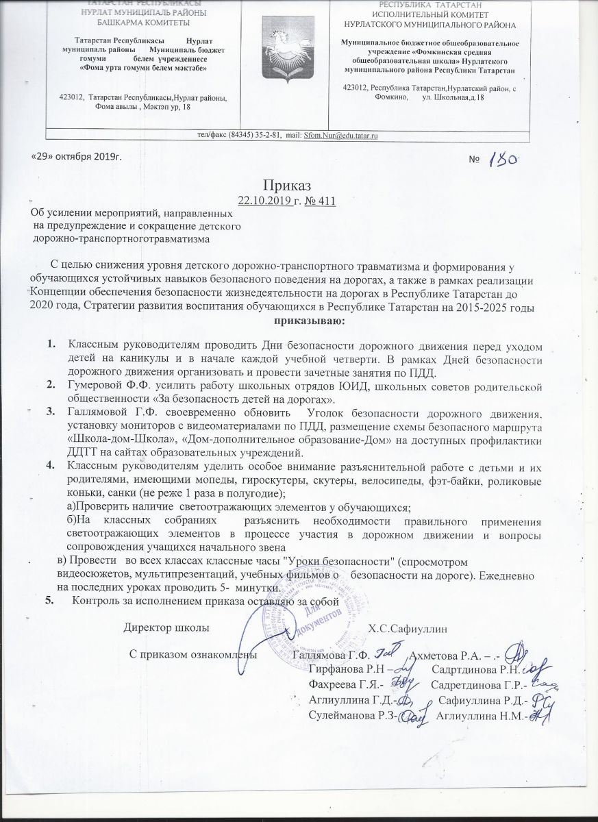 Приказ о проведении недели безопасности 2019- 2020 уч году