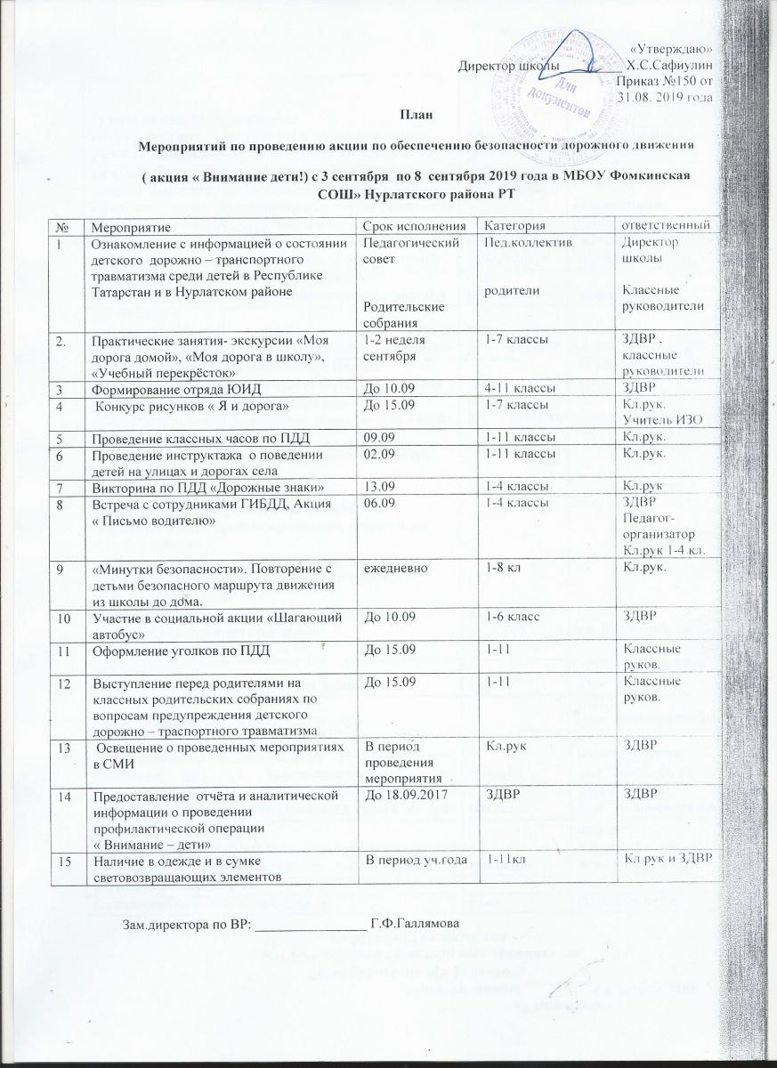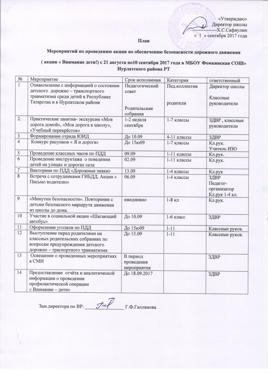 План мероприятий по проведению акции по обеспечению безопасного дорожного движения