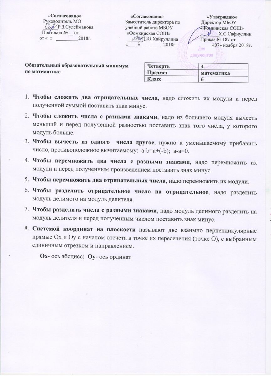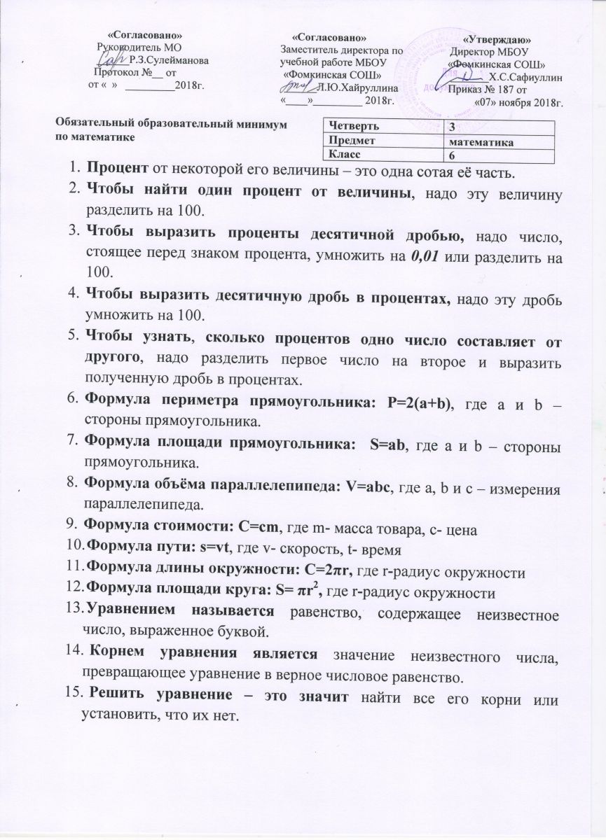 График проведения образовательного минимума за 2 четверть 2018-2019 учебного года