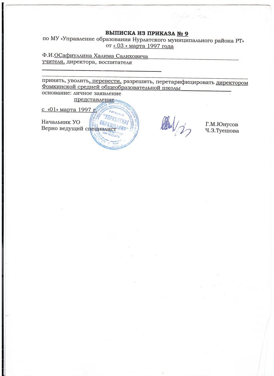 Решение о назначении руководителя МБОУ "Фомкинская СОШ" /МБГБУ"Фома УГБМ"  җитәкчесең билгеләү турында карар