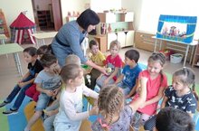 В целях развития связной речи дошкольников в детском саду “Буратино” учитель начальных классов Хузахметова Гулия Рифкатовна МАОУ «СОШ №9» г.Нурлат провела игровое занятие “Изучение окружающей среды“. В ходе занятия учащимся были продемонстрированы презентации, беседы о временах года, проведена игра “Подбери действие”. Дети строили картинки из пазлов, рассказывали ответы на загадки, танцевали. Занятие прошло организованно. Мәктәпкәчә яшьтәге балаларның бәйләнешле сөйләм телләрен үстерү максатыннан “Буратино” балалар бакчасында Нурлат шәһәренең 9 нчы мәктәпнең башлангыч сыйныф укытучысы Хузахметова Гөлия Рифкать кызы “Тирә - якны өйрәнү“ дип аталган уенлы шөгыль уздырды. Шөгыль барышында укучыларга презентация күрсәтелде, ел фасыллары турында әңгәмә корылды, “Эшне сайла” дигән уен уздырылды. Балалар пазллардан рәсемнәр төзеделәр, табышмакларга җаваплар әйттеләр, биеделәр. Шөгыль оешкан рәвештә утте.