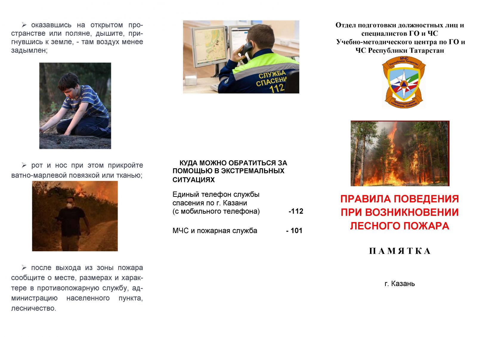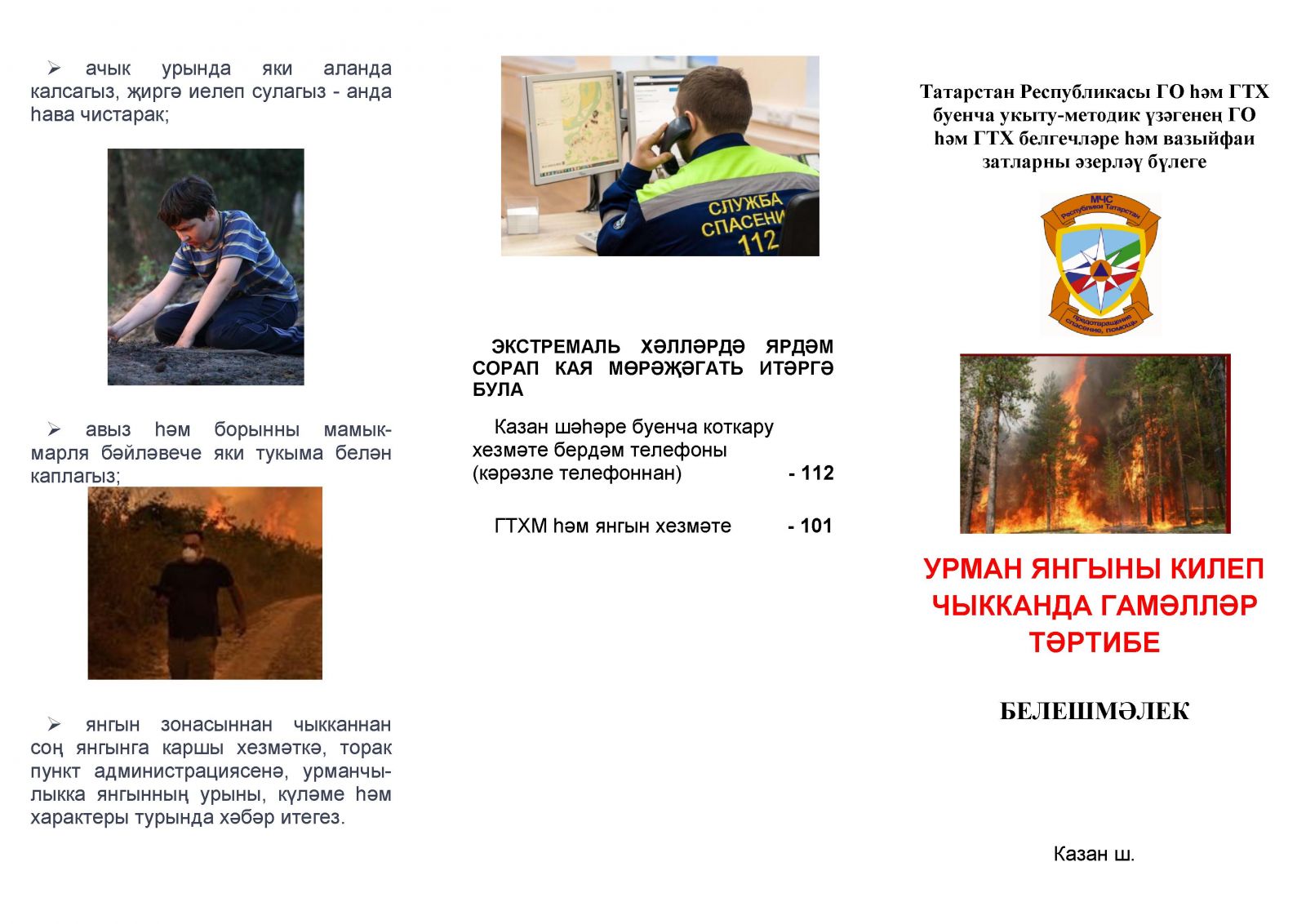 Памятки по правилам поведения при возникновении лесного пожара и правилам поведения на воде/Урман янгыны килеп чыкканда hэм суда узенне тоту кагыйдэлэре