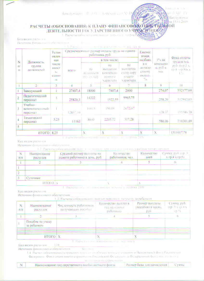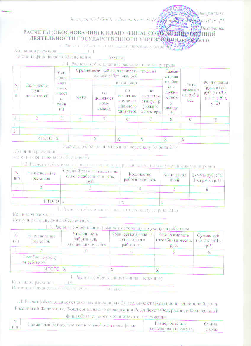 Расчеты (обосования)к плану финансово-хозяйственной деятельности государственного учреждения /Дәүләт учреңдениеләре финанс-хуҗалык эшчәнлеге планына исәп-хисап(нигезләү)