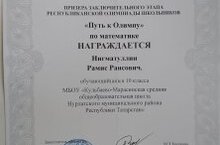 Ученики 11 класса Гайнутдинова Руфина, Сабирова Рузина . Хисамова Альфина стали призерами заключительного этапа Республиканской олимпиады школьников по татарской литературе. Учитель: Галиуллина Рамзия Гасымовна. Поздравляем!