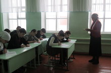 Рус теле һәм әдәбияты атналыгының хәрби-патриотик айлык белән тәңгәл килүендә тирән мәгънә тоеп, бүген мәктәптә батырлык темасына (отрывок из произведения "Живые нити" Р.Мустафина ) мәктәпкүләм диктант язу оештырылды. Диктантлар тикшерелеп, мәктәбебезнең иң белемле укучысы ачыкланачак һәм уңай билге алган диктантлардан алдагы көннәрдә күргәзмә оештырылачак. Хәзергә исә диктанталар тикшерү уза, ә диктант язучылар, дулкынланып, эш нәтиҗәләрен көтәләр. Аларның барысына да уңышлар телибез