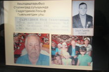 Сурәттә: Сталинград сугышында катнашкан авылдашыбыз Садретдинов Й.Г. турындагы слайд, презентациядән