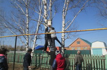 Сурәттә: сыерчык оялары өлкәннәр ярдәме белән мәктәп ишегалдындагы каен агачларына эленде.