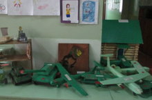 Сурәттә "Оста куллар" түгәрәгендә егетләр эшләгән эшләнмәләр. Җитәкчеләре Курамшин Р.Х.