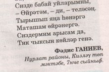 7 нче сыйныф укучысы Колмөхәммәтов Зөлфәтнең "Җәйнең иң матур хәтирәсе" исемле язмасы "Көмеш кыңгырау"ның бүгенге санында, "Ачык ишек" сәхифәсендә басылган. Зөлфәт өчен иң истәлекле вакыйга - "Болгар-туган тел" палаткалы лагеренда ял итү.