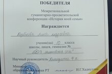 25 марта 2023 года в г. Казань состоялась Межрегиональная гуманитарно-просветительская конференция "История моей семьи",победителем в которой стала учащаяся 10 класса Мамыковской СОШ Коробкова Алла, научный руководитель- учитель истории Ф. И. Калимуллина/2023 елның 25 мартында Казан шәһәрендә "Минем гаиләм тарихы" төбәк-ара гуманитар-агарту конференциясе узды, анда мамыков урта гомуми белем бирү мәктәбенең 10 сыйныф укучысы Коробкова Алла, фәнни җитәкче - тарих укытучысы Ф. и. Кәлимуллина җиңүче булды 27.03.2023