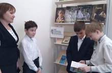Учащиеся 5 класса у выставки, приуроченной Неделе художественно-эстетического цикла в читальном зале школьной библиотеки\5 класс укучылары мәктәп китапханәсенең уку залында сәнгать-эстетик атна уңаеннан күргәзмәдә 09.02.2023