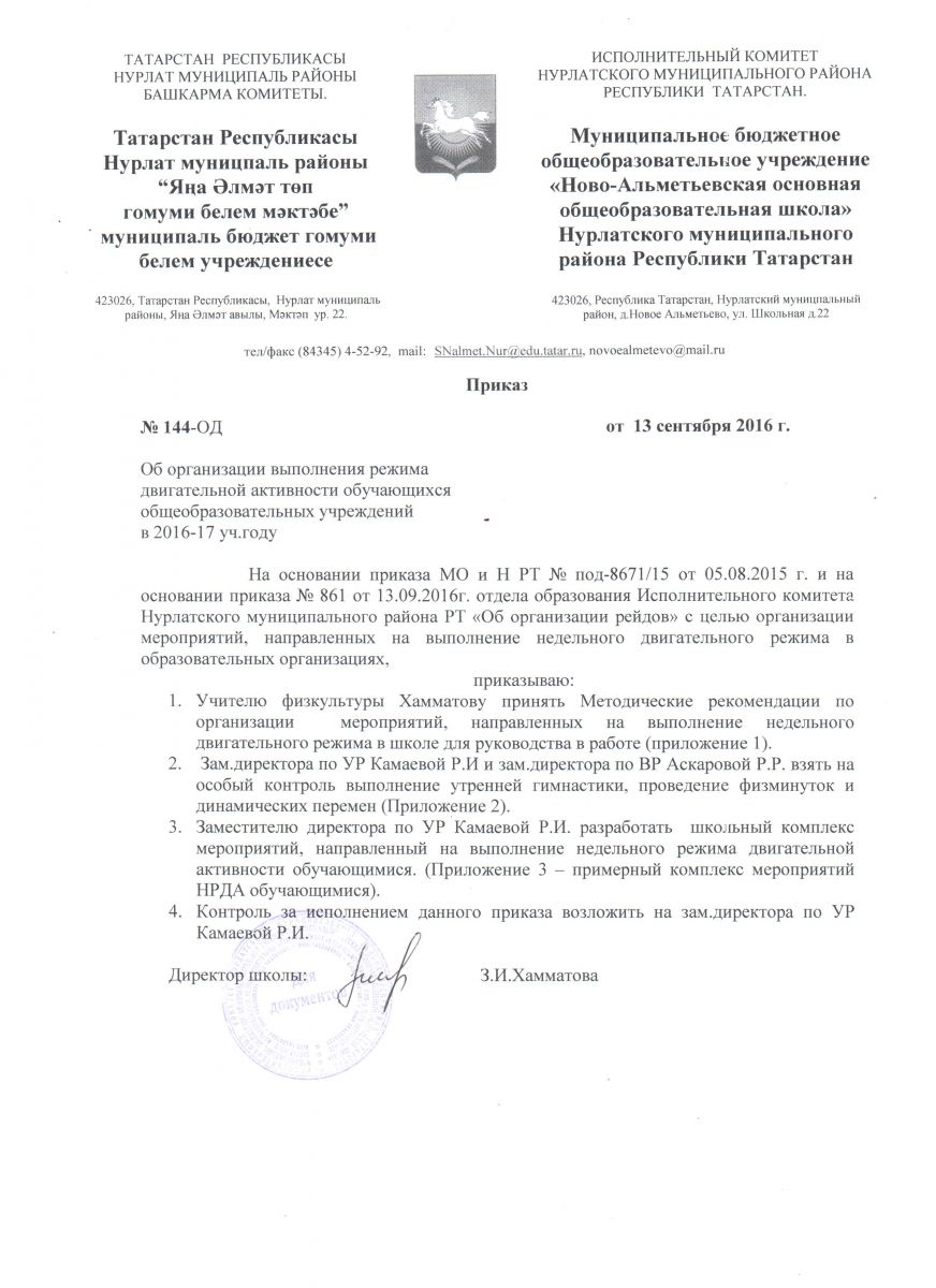 Приказ №141 от 18.09.2015г о выполнения обучающимися тестирования нормативов ВФСК (ГТО)