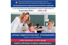 14 декабря 2018 года в 16 часов состоится очередное заседание Республиканского родительского интернет-собрания на тему: «Этика педагогических отношений: педагог, ученик, родитель».