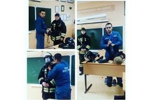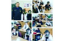 В ходе проведения урока Альберт Ахтямович использовал демонстрационный материал (спасательное оборудование, снаряжение и др.), видео ролики по обеспечению безопасности и правилах поведения при ЧС, о разновидностях и правильном использовании огнетушителей. Всем желающим дали примерить экипировку пожарного, индивидуальный газодымозащитный комплект.