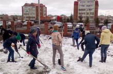 В предверии праздника Пасхи обучающиеся Нурлатской гимназии провели субботник по очистке территории от снега