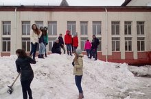 Обучающиеся проводят субботник по очистке территории от снега.