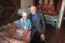 В гостях у нашей подшефной, Агаповой Антонины Андреевны. Директор МАОУ "Нурлатской гимназии имени Героя Советского Союза Михаила Егоровича Сергеева" Владимир Михайлович Кашкаров в предверии Дня Победы вручил подарки.