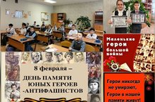 Дети познакомились с произведениями С. Алексеева, Л. Кассиля, серией книг о пионерах-героях, сборниками о ВОВ и другими материалами. В заключительной части дети почтили память погибших юных героев минутой молчания.Ел саен 8 февральдә яшь герой-антифашистны искә алу көнен билгеләп үтелә. Сайлау очраклы түгел. Дөньяның төрле илләрендә фашизмга каршы көрәштә катнашучы яшь геройлар нәкъ менә шул көнне һәлак булды.