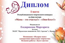 От всей души поздравляем Краснову О.П., её ученица Ендирякова Маргарита стала Победителем Республиканского творческого конкурса ко Дню Матери.