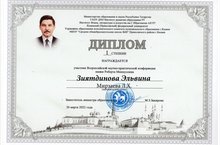 Поздравляем ученицу 5а класса Зиятдинову Эльвину, она награждена дипломом 1 степени Всероссийской научно-практической конференции имени Роберта Миннуллина! Руководитель Мирзаева Л. Х.!
