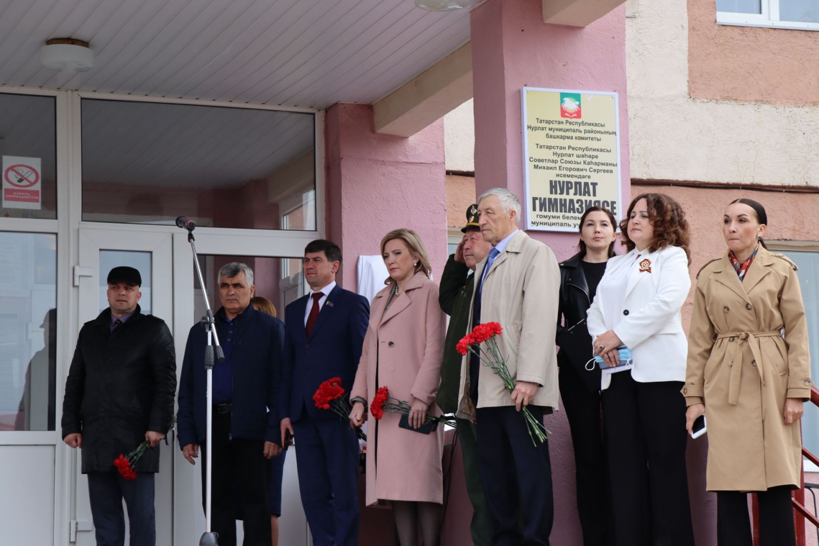 В памятном мероприятии приняли участие заместитель главы района Линар Маняпов, депутат Госсовета Татарстана Людмила Рыбакова, военный комиссар района Загир Абдуллин, родные и близкие погибшего, гимназисты и др.