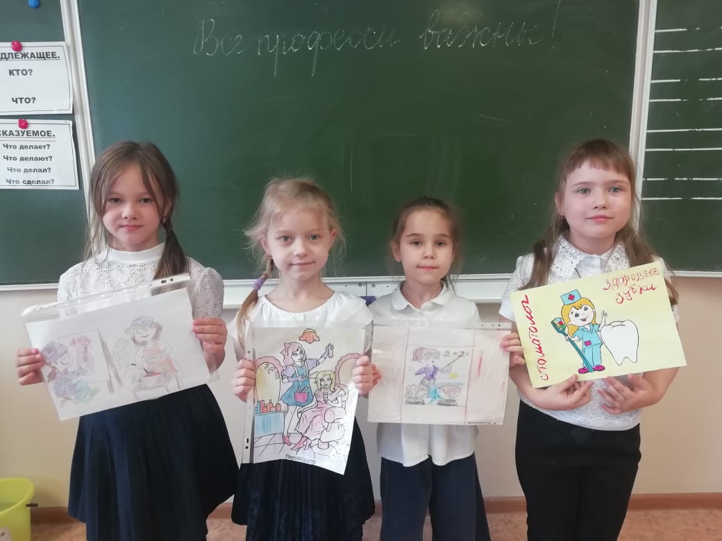 Сегодня в целях проведения профориентационной работы среди учащихся, в 1б классе провели конкурс рисунков «Все профессии важны!»