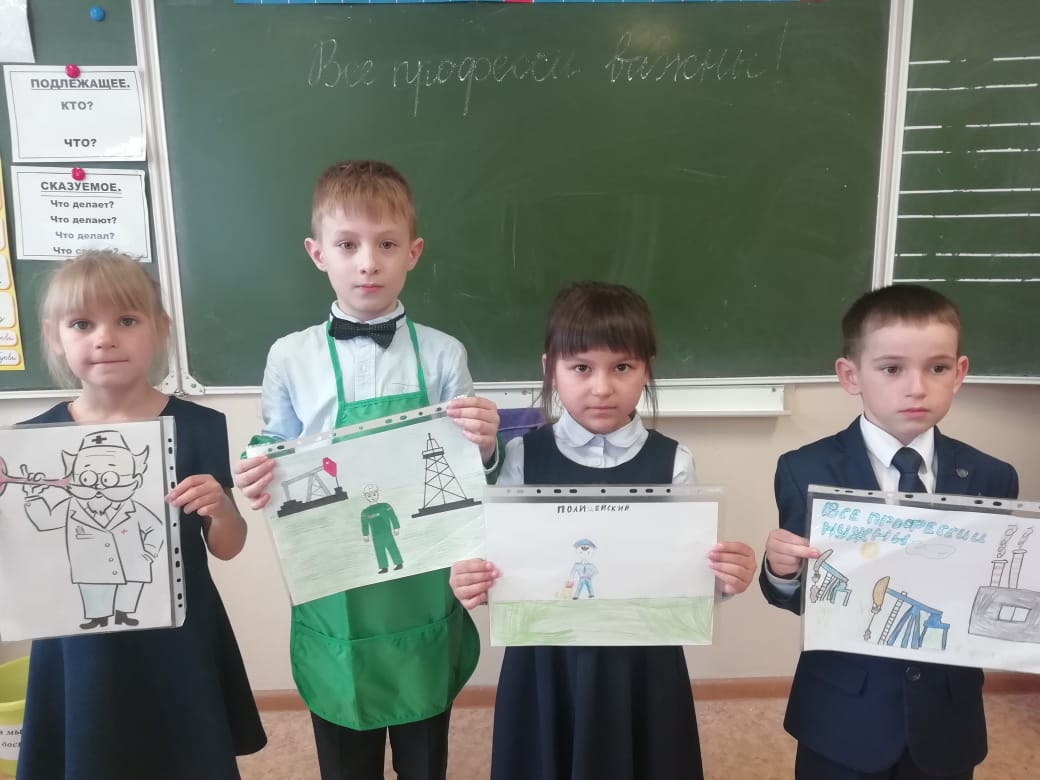 Бүген, профориентация эшен үткәрү максатыннан, 1б сыйныфында "Барлык һөнәрләр дә мөһим!» дигән рәсемнәр конкурсы узды.