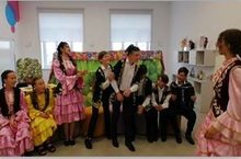 Татар теле укытучылары һәм гимназия укучылары Татарстанның халык артисты Айдар Фәйзрахманов җитәкчелегендәге Татарстан Республикасы Дәүләт фольклор музыкасы ансамбле концертын карадылар. Алар укучыларга халкыбызның борынгы җырларын башкардылар, биюләр бүләк иттеләр. Төрле уен коралларында уйнап күрсәттеләр. Айдар Фәйзрахманов үзе дә бәйрәм концертын күңелгә үтеп керерлек итеп алып барды, рәхәтләнеп балалар белән аралашты, җырлады, биюләрдә катнашты. Укучыларны төрле уен кораллары белән таныштырып, анда уйнатып та карады. Укучыларга концерт бик ошады. Учителя родного ( татарского) языка и обучающиеся гимназии посетили концерт государственного ансамбля фольклорной музыки Республики Татарстан под руководством народного артиста Татарстана Айдара Файзрахманова. Они исполнили старинные народные песни, подарили учащимся замечательные танцы, играл на различных инструментах. Айдар Файзрахманов сам вел праздничный концерт, с удовольствием общался с детьми, пел, участвовал в танцах. Познакомил учащихся с различными инструментами и позволил поиграть на них. Дети с восхищением смотрели концерт.