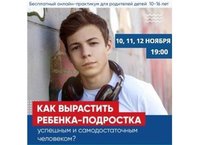 Бесплатный онлайн-практикум для родителей 10-16 лет пройдет 10,11,12 ноября в 19ч00мин