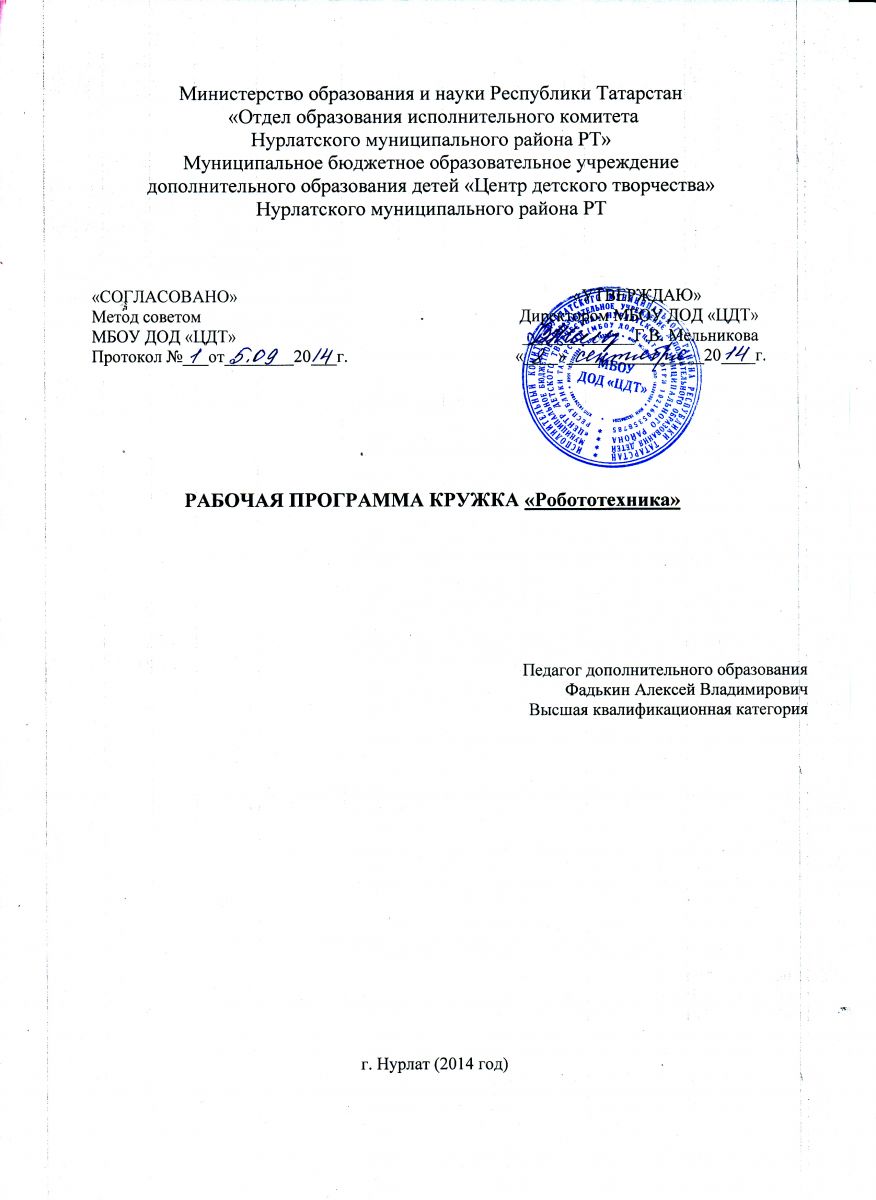 Программа - Робототехника2 Список обучащихся кружка Робототехника