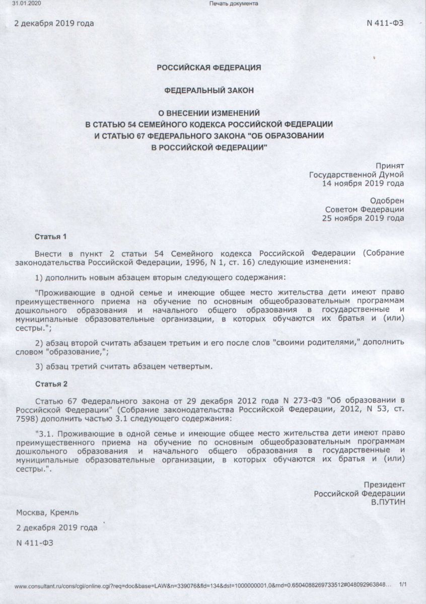 О внесении изменений в ст54 Семейного кодекса и ст67ФЗ Об образовании в РФ