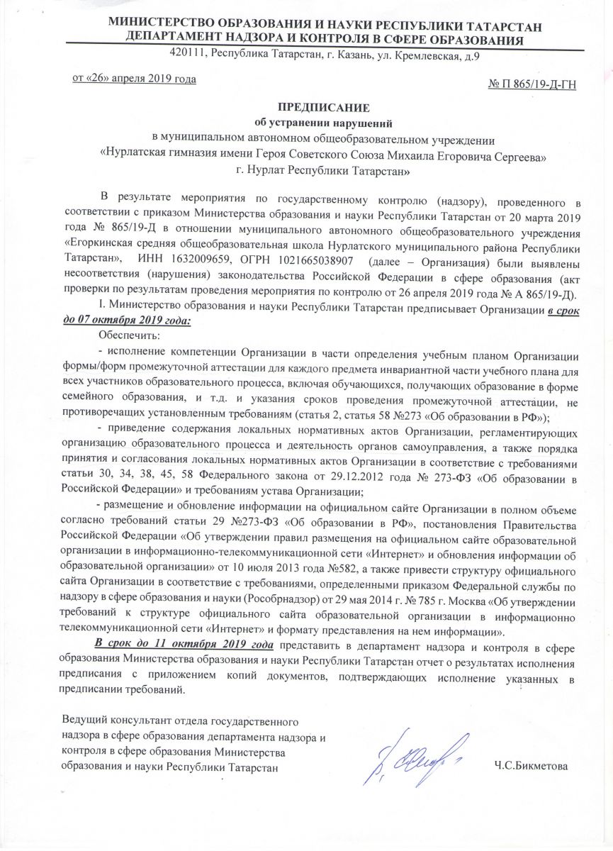 Предписания МО и Н РТ