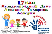 17 мая - Международный день Детского телефона доверия. 8-800-2000-122.