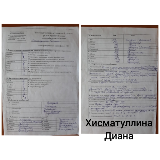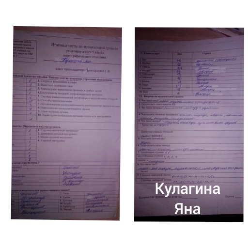 Экзаменационные тесты по муз грамоте уч-ся 5 класса отделения хореографии