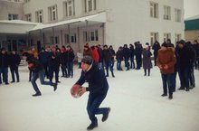 Мероприятие прошло очень весело: команды соревновались в веселой эстафете, перетягивании каната и толкании гири (16 кг.) на дальность.